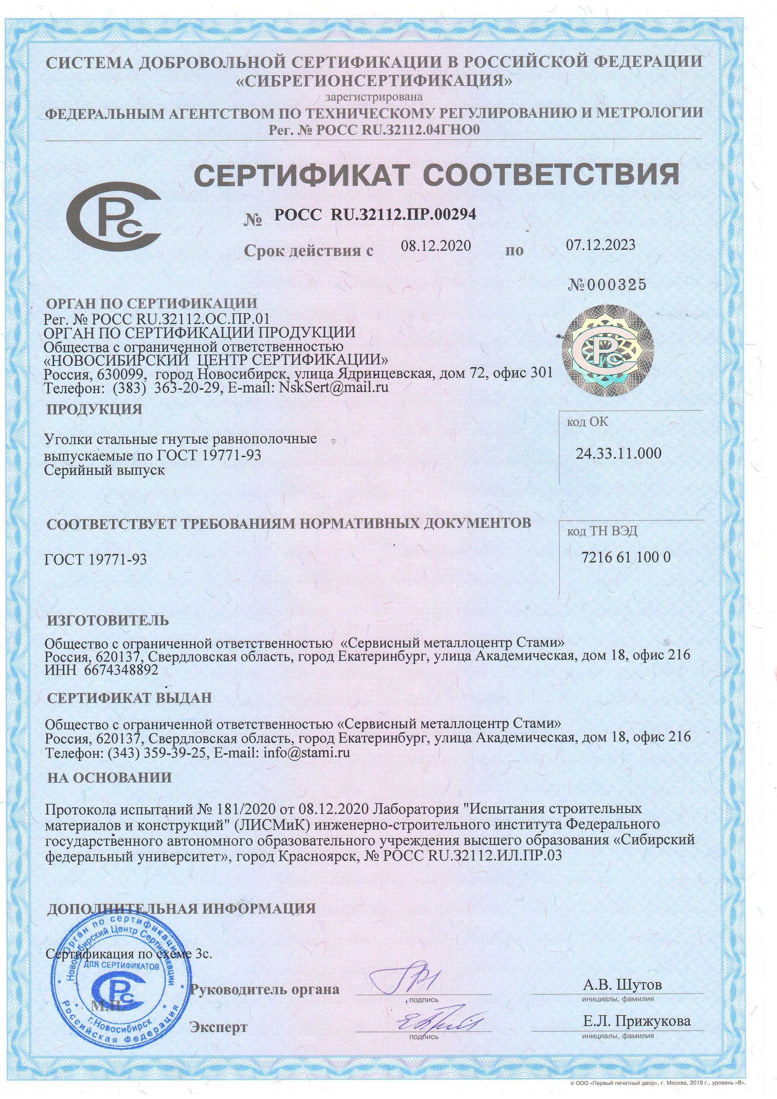 При заказе уголка СМЦ «Стами» предоставляет сертификат. Из него можно получить массу полезной информации о типе уголка, методе его изготовления, марки использованной стали. Кроме того, сертификат является своего рода гарантией того, что вы приобрели качественный уголок .
